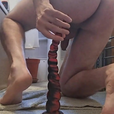 "Hardcore riding back on Huge Dildo"