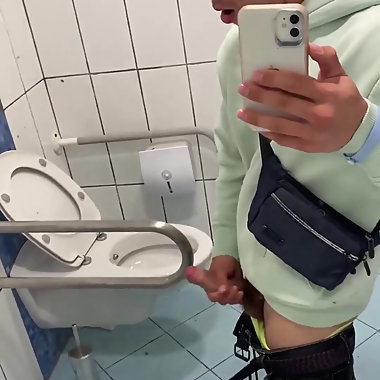 "Public toilet - horny jerk off & cumshot"