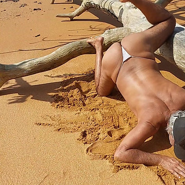 "Ladysilva crossdresser on the beach in panties what a hot ass"