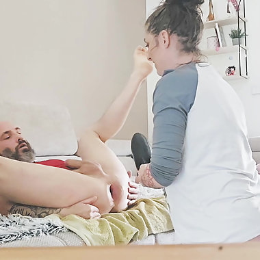 "Woman sucks man's ass and gives prostate massage with dildo #732 rimming - rimjob part 2"