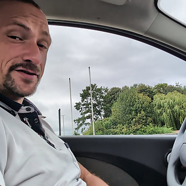 "BeENJoY - I jerk off my big cock in the car in the middle of the city - people look at me and I cum on the side of the road - caught"