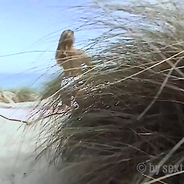 "Amateur blonde Lucy masturbates on the beach"